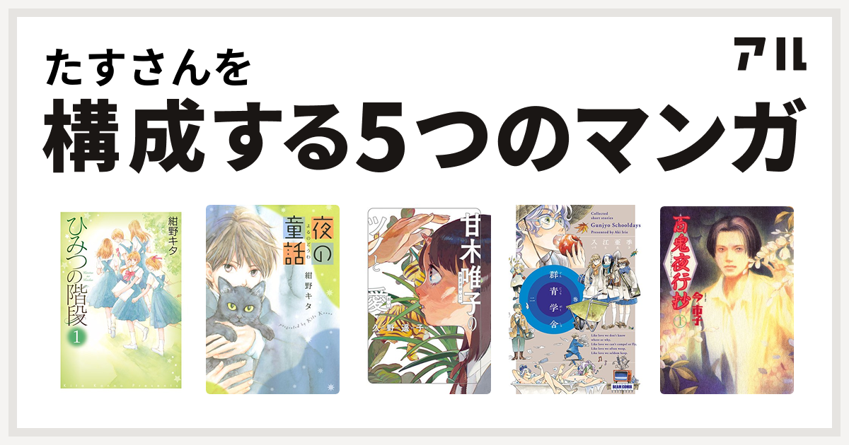 たすさんを構成するマンガはひみつの階段 夜の童話 甘木唯子のツノと愛 群青学舎 二巻 百鬼夜行抄 私を構成する5つのマンガ アル